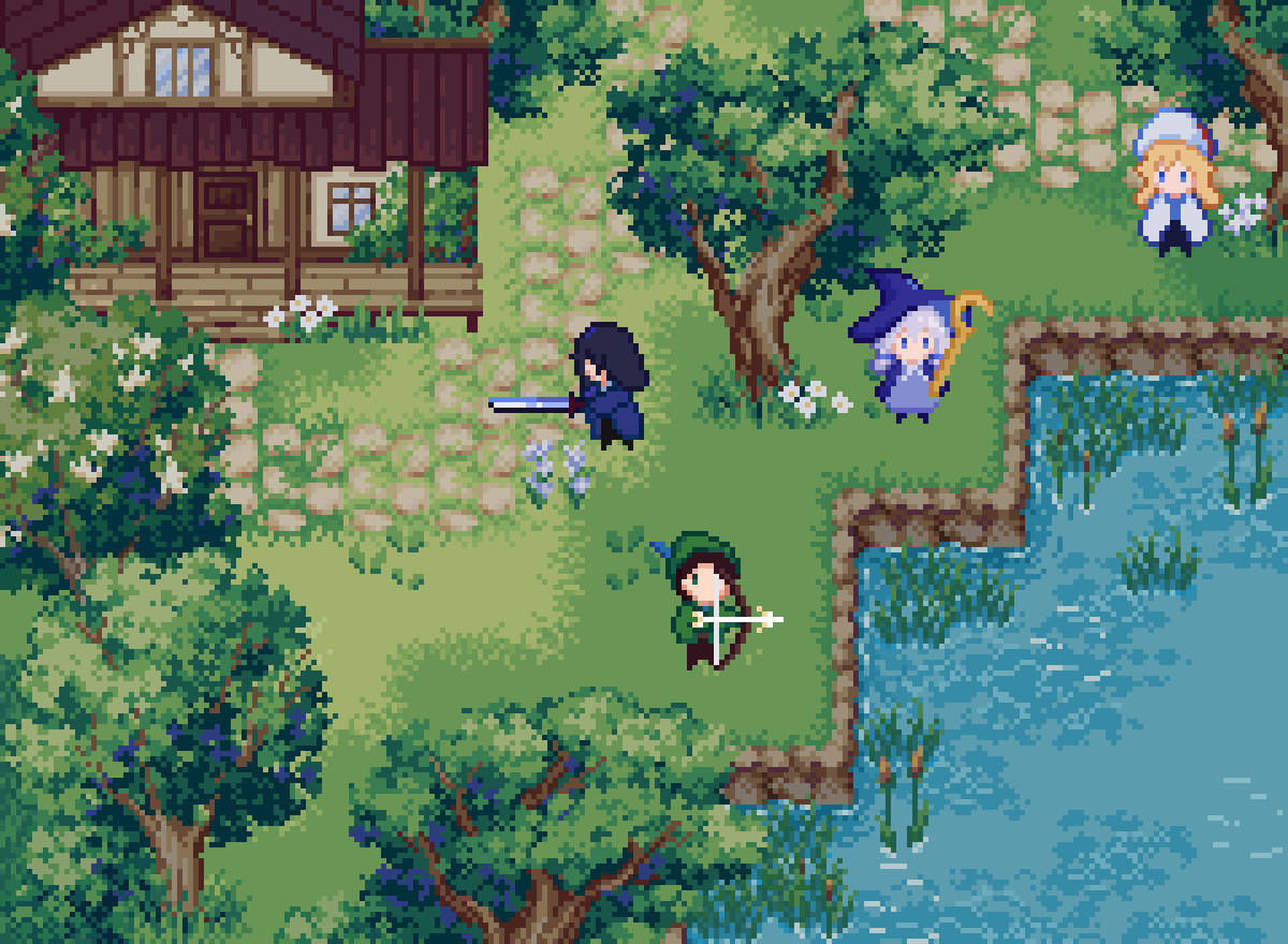 The background I'm using to show the characters is not included with this asset pack. The nature background is from my other asset pack: Farm - 4 Seasons 16x16 Pixel Art Tileset.